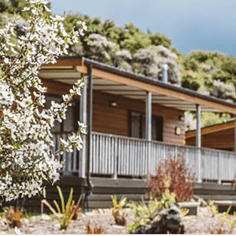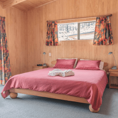 The stylish one bedroom chalets blend beautifully into the natural bush surroundings at Tangiaro. They are self-contained, with well-equipped kitchens, bathrooms (with both shower and bath), a gas fireplace and a generous-sized deck.