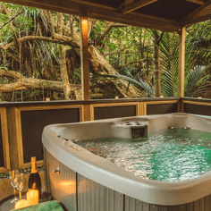 Tangiaro Kiwi Retreat is Nestled beneath beautiful Moehau Mountain at the very top of the Coromandel Peninsula. A little river trickles its way quietly through tranquil fauna and Kiwi call can be heard at night. Enjoy the comfort of your very own modern chalet, access to four spa pools nestled in the native bush and the beautiful onsite restaurant and bar. Tangiaro even brews it's own beer and serves a selection of local wines. Book a massage in advance with the lovely Jan (she has magic hands!).