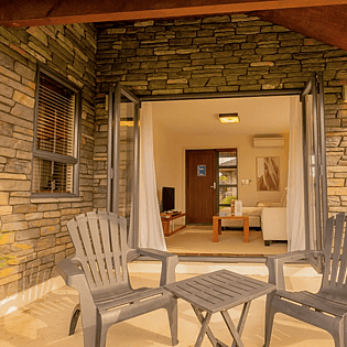 Each chalets boasts 60 square metres with a separate lounge area, well-equipped kitchenette and a dining area furnished with a refrigerator and tea-making facilities. The generous bedroom presents come as double or twin-share and the beds are adorned with luxurious linens, ensuring a great night's rest. The bathroom features a rejuvenating jacuzzi bathtub, spacious shower, high-end towels and robes, and indulgent Ashley & Co toiletries. Step outside onto the outdoor patio and immerse yourself in the breathtaking surroundings.